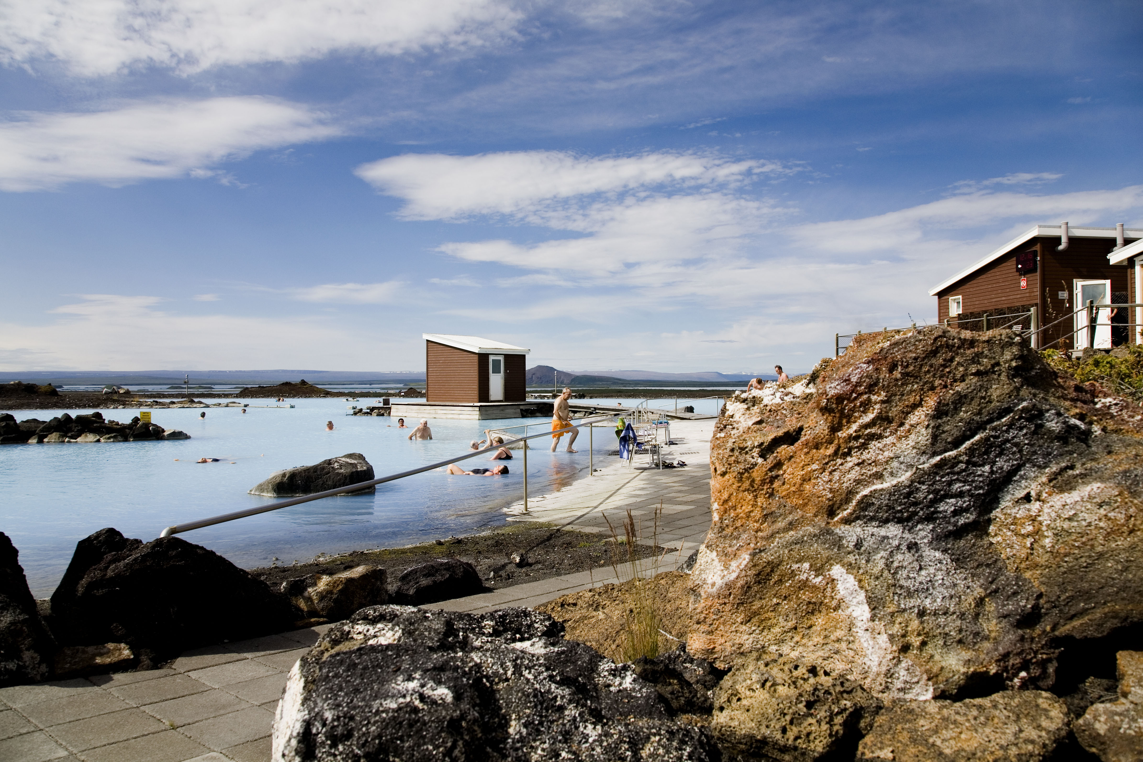 北部的米湖天然温泉,这里的泉水颜色也是淡蓝色,可以说是个袖珍版的蓝湖温泉,人要少许多。去往著名的米湖天然温泉,在那里放松身心,米湖周边的景色是北冰岛的代表,令人赞叹不已。