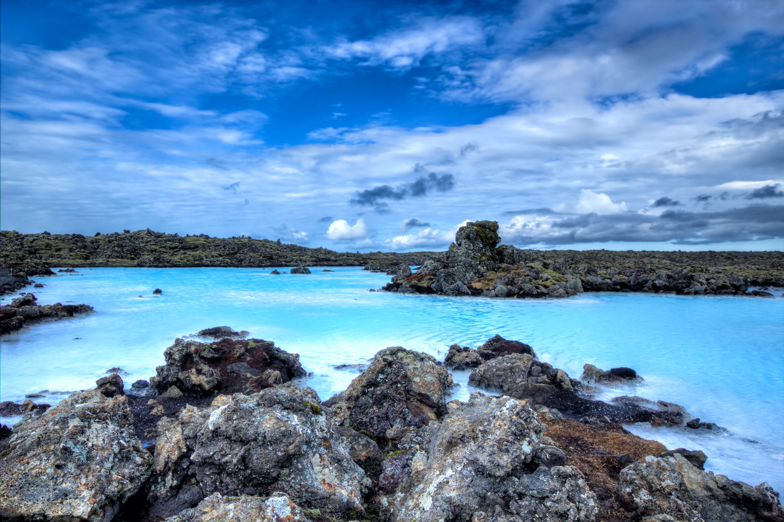 冰岛蓝湖地热温泉位于冰岛西南部,距离首都雷克雅未克大约39公里,是冰岛最大的旅游景点之一。蓝湖所在地是地球上地下岩浆活动最为频繁的区域之一,这种活动加热了蓝湖,使得水体蒸腾。地面附近的熔岩流加热的水蒸汽用于推动涡轮机发电,经过了涡轮机的蒸汽变成热水,经过换热器又为市政热水供暖系统提供热量,可谓一举多得。蓝湖洗浴和游泳的礁湖地区水温平均在40℃左右,水体有丰富矿物质,如硅和硫,在蓝湖泡温泉,可以帮助治疗一些皮肤疾病,如牛皮癣等。冬天,四周一片冰天雪地,而湖里冒着热气。水里的矿物质对皮肤病有特殊疗效,对牛皮癣这样的疑难病症也有很好的疗效。由于它离雷克雅未克市凯夫拉维克国际杨场不远,许多途径雷市的旅游者,利用转机的几个小时空闲,专程坐车到蓝湖。泡在湿热的水里,用白色的二氧化碳泥在身上揉搓,会将那旅途劳顿一扫而光。蓝湖虽然是露天的,但因是温泉,一年四季都可接待来访者。