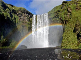 冰岛有无数的瀑布,每一个都各有特色,但是斯科加瀑布却独具魅力。它位于冰岛南部,是冰岛最大的、最壮丽的瀑布之一,其宽度为25米,水流落差达60米,水流奔腾而下的气势非常壮观,吸引了很多游客来一睹它的风采。斯科加瀑布两旁的山上都长满了绿色的植物,两旁的山崖把瀑布包围在中间,白色的瀑布水流与周围的绿色植物搭配的恰到好处。