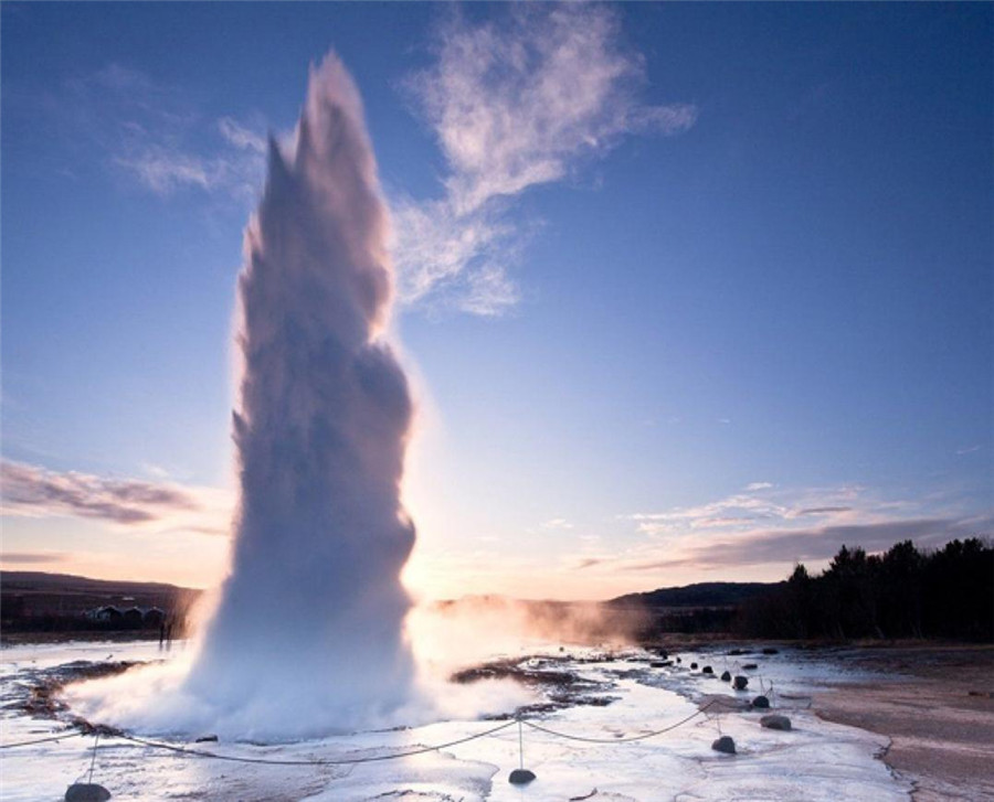 间歇喷泉是全国之旅重要的行程,有自然间歇喷泉在冰岛南方平原最西北边,位于冰岛西南部奥德恩斯的赫伊卡达伦居民点附近。这个地区是一个大喷泉区,到处冒出灼热的泉水,热气弥漫,如烟如雾。很多热景观可参观,包括喷泉、彩池、喷气孔等。大间歇喷泉是一个直径约18米的圆池,水池中央的泉眼为一直径10多厘米的“洞穴”,沿内水温高达百度以上。每次泉水喷发之际,只听洞内隆隆作响,渐渐地,响声越来越大,而且沸水也随之升涌,最后冲出洞口,向高空喷射,从中间水柱变成蒸汽直冲上天空约20米高,又随即化作琼珠碎玉落下。每次喷发过程大约持续1~2分钟,然后渐归平息。这一过程周而复始,不断反复,十分壮美。