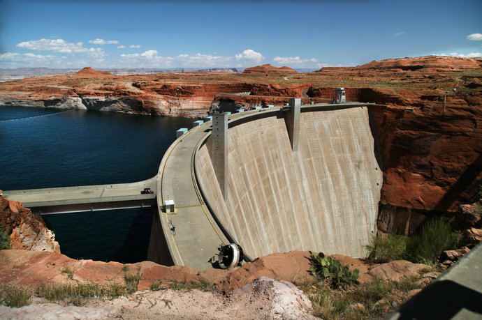 胡佛水坝位于内华达州和亚利桑那州交界之处的黑峡(BlackCanyon),为美国最大的水坝,是美国综合开发科罗拉多河水资源的一项关键性工程。它并被赞誉为“沙漠里之钻石”(Diamondonthedesert),具有防洪、灌溉、发电、航运、供水等综合效益。