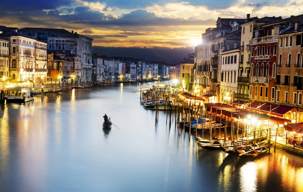 早上起程前往世界十大旅游胜地之一,有「水都」美誉之威尼斯,抵达后,乘「水上的士」前往闻名的圣马可广场,游览充满拜占庭色彩的圣马可教堂,连接宫殿和监狱的叹息桥、昔日最繁忙的大运河及充满特色的购物小巷,团友更可自费乘坐地道特式贡多拉船,畅游于运河间欣赏水都风光,稍后团友可漫游在古老的蜿蜒巷弄,到怀旧咖啡屋或餐厅品尝各式美食。