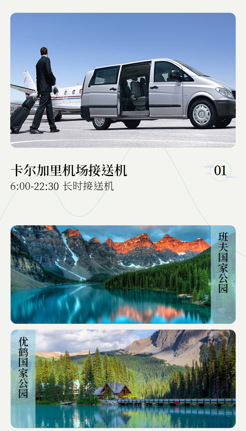 行程首日,提供指定时段卡尔加里国际机场(YYC) 接机服务(请至少提前 3 天提供完整的航班信息,晚于该时间,将无法安排免费接机服务),具体接机信息如下: