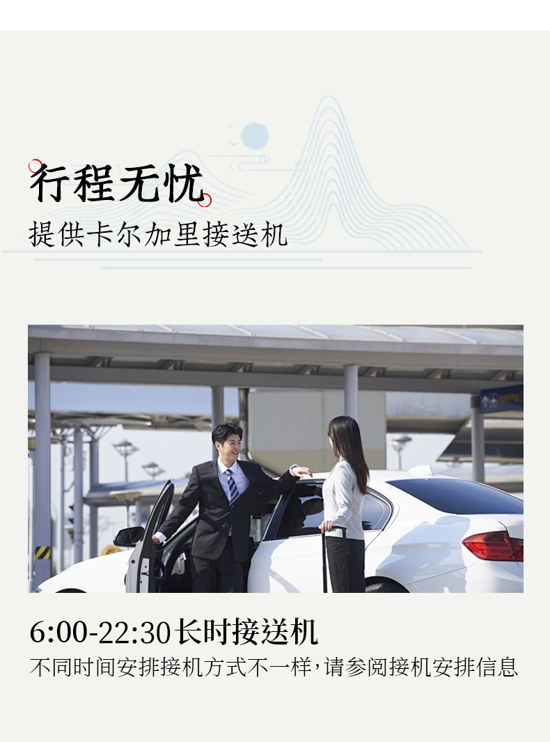 根据航班时间,灵活协调安排导游接机或酒店接驳车接机,航班抵达时间相近的客人将乘坐同一班次的接机班车,可能会造成您在机场短时间的等待,请您多多谅解。
