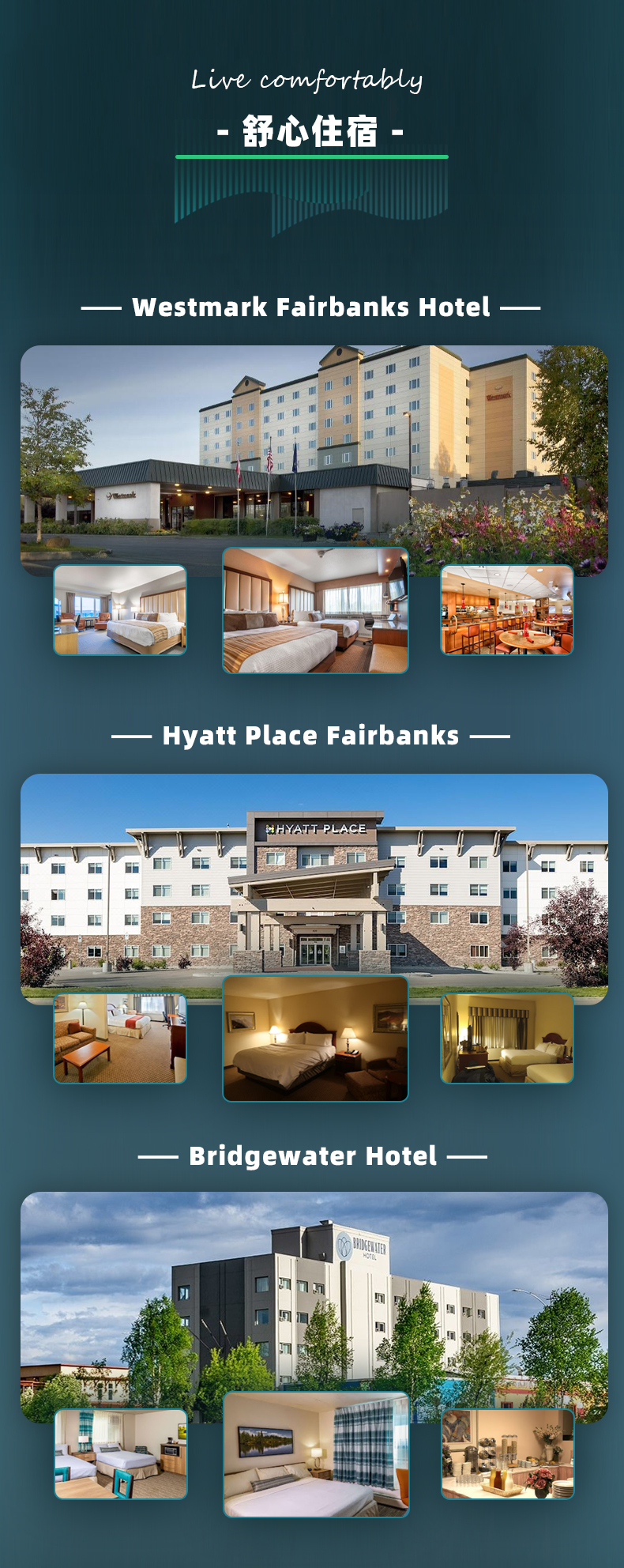 5. 行程结束后,如您计划继续在费尔班克斯停留,可提前选择酒店延住。