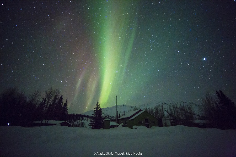 第1天:家园(Home) – 抵达费尔班克斯(Fairbanks,机场代码:FAI) – 小木屋观极光