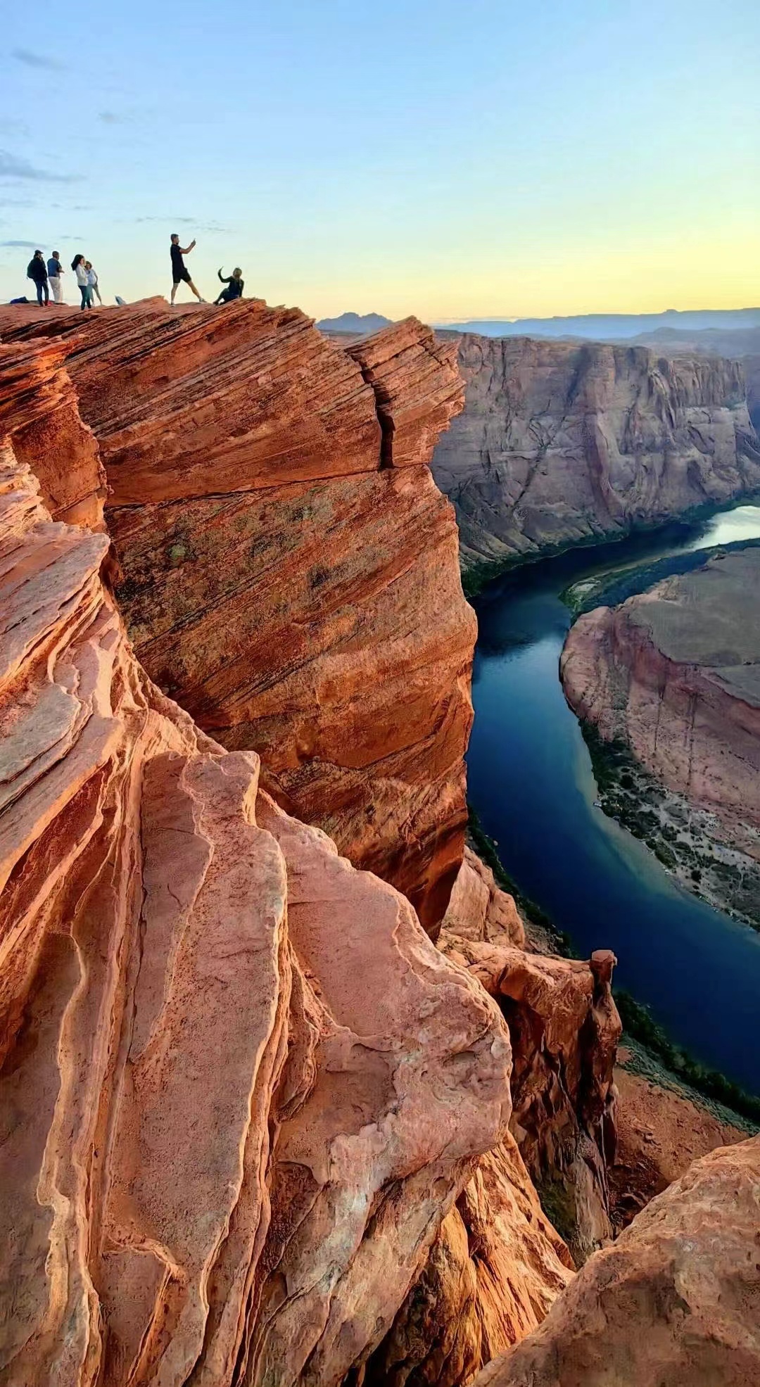 【马蹄湾】日落–国家地理杂志评选出的美国十大最佳摄影地点之一!科罗拉多河床上密布的水草使得河水在阳光下呈现出荧光般的幽绿,河流于此在红褐色的峡谷内急转360度,切割出一个马蹄状的峡谷,马蹄湾正是由此而得名。站在峭壁边,沉醉于碧水蓝天红岩钩织出的动人心魄的美。