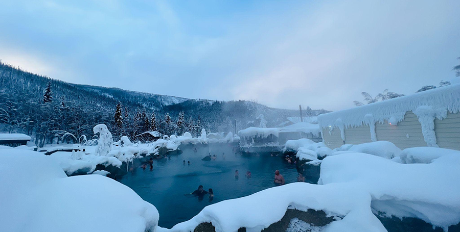 有室内温泉游泳池和室外温泉池,置身在冰天雪地中感受矿物温泉的温暖,可以体验泡在温泉中全身发热而头发结冰的神奇感觉,是世界上独一无二的神奇体验。不仅获得精神上的愉悦,对疲惫的身体具有疗愈的功效,是费尔班克斯冬季最受欢迎的游览项目。在度假村的东南角还有驯鹿(Reindeer)养殖场(外围参观),即使是在寒冬腊月,也可以看到圣诞老人的好伙伴,在这里优哉游哉的享受生活。