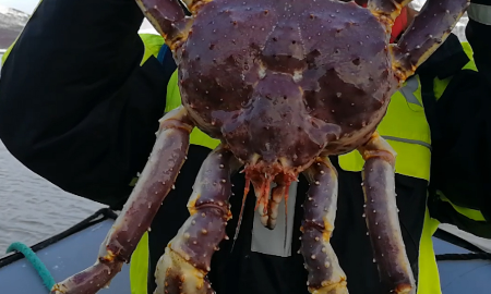 在希尔克内斯准备出发,跟随当地的探险向导,接送前往位于峡湾的传统渔夫农场,换上专业的保暖服和装备后。 出海来到巴伦支海上进入峡湾(春夏秋季节将乘坐橡皮艇出海,冬季海面冰封,则乘坐雪地摩托雪橇穿越冰封河面),抵达捕捞海域后观看当地渔夫的收笼过程,专业的渔夫事先在捕蟹的水域下了网,并把蟹喜欢的食物做了诱饵,我们可以亲自动手体验拉网过程。冬季则凿开峡湾上的冰层,拉网取出捕捞的帝王蟹,全体与捕捞上的帝王蟹合影留念,随后开始美味帝王蟹大餐。同时欣赏雪酒店独特的峡湾景观、在峡湾雪景中品尝一顿帝王蟹大餐。