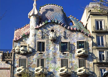 巴特约之家是一座外墙以彩色马赛克装饰的建筑,是加泰罗尼亚家庭艺术运动和现代派艺术的代表作。它的屋顶覆盖着陶瓷板,好像火龙的脊背起伏,烟囱好似一把大剑。据说是在讲述加泰罗尼亚的保护神圣乔治战胜恶龙的传说。面具造型的阳台和骨骼形状的立柱,增强了故事的奇异气氛。整幢建筑具有耀眼的美感,令人不禁要赞叹大师的奇思妙想。巴特约之家的一楼、阁楼和“跳舞的烟囱”对外开放。
