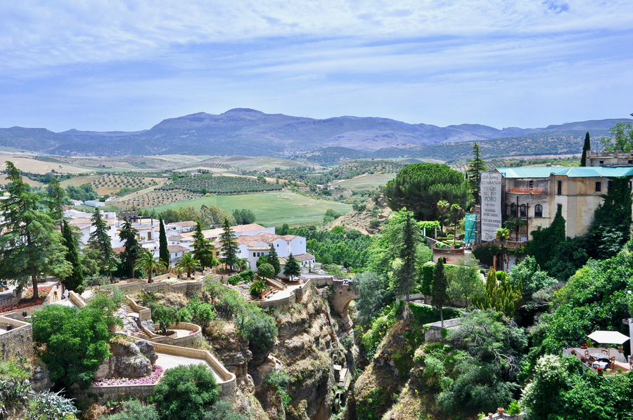 龙达小镇,坐落于西班牙南部的一个小镇。诞生于罗马帝国时代,三千多年前,一批旅人风尘仆仆地爬上这座七百五十公尺的峭壁,发现这里地势险要,河流丰沛,食物丰美,于是安营扎寨,造出了第一座房子。这白色的房子如同一颗白色的种子,随后,剧院、教堂、街道依次蔓延整个山坡,最终长为一座至今繁荣的小镇。