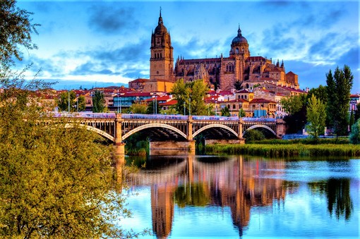 杜丽多大教堂,被称为是西班牙最美的教堂。也是西班牙排名第二的大教堂。它的前身也是6世纪开始动工的清真寺,教堂在它的基础上1247年动工。采用了当时在西班牙教堂中很少用的法国哥特式建筑形式。1493年完成。从1226年大主教放置第一块石头算起到1493年主体完成,建了两个多世纪,而装修完成于18世纪,真是旷世工程。教堂充分体现了西班牙式哥特艺术风格、圣地亚哥风格和巴洛克风格。教堂的正面高耸着两座塔楼,一座是哥特火焰式的尖顶,另一座是哥特文艺复兴风格的圆顶。