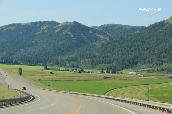 我先飞到爱达荷。从那里驱车至西黄石镇入公园西门。这是爱达荷的路边风景。大片的草原。一家农户不知有多少顷地。这是美国“地多钱少”的地区。长长的水车不停地浇地,水雾在太阳的映照下出现道道彩虹。蓝天、白云、草原、彩虹。世界多美好!
